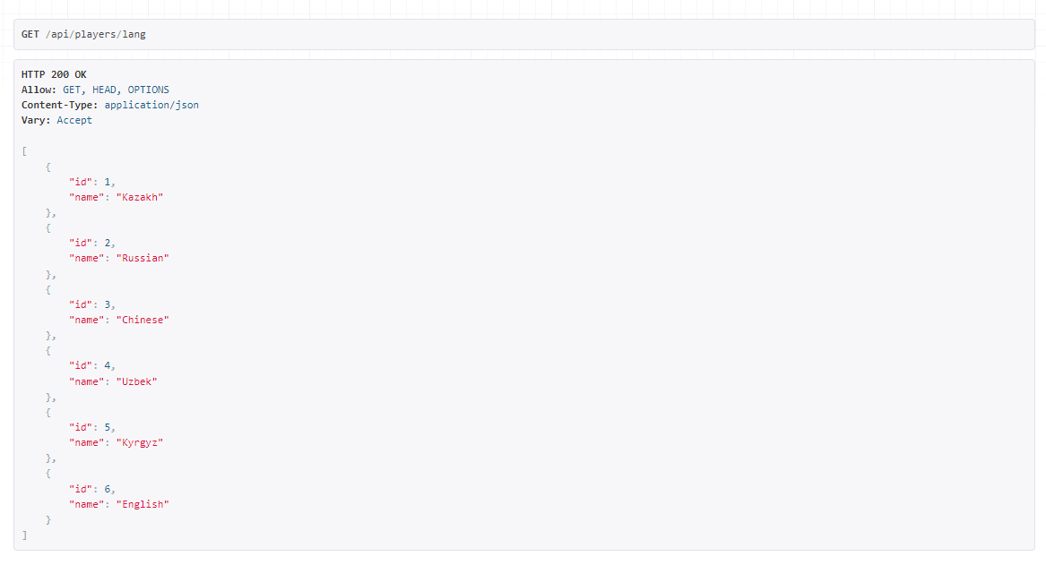 Список доступных языков