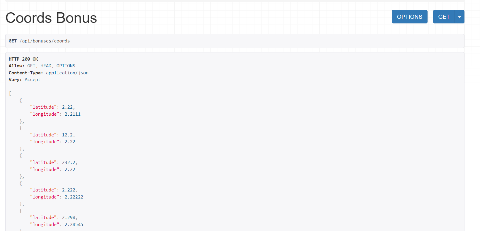 Случайные 15 координаты для получение бонусов, при каждом запросе генерится случайные координаты