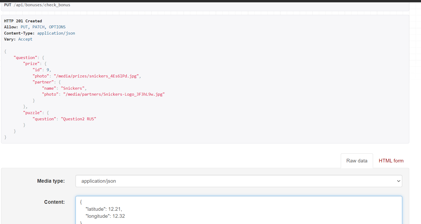 Игрокам будут заданы координаты 15 бонусов, приблизивший на один из координат игрок применяет этот запрос чтобы получить вопрос пазла, и описание приза (приз рандомный)