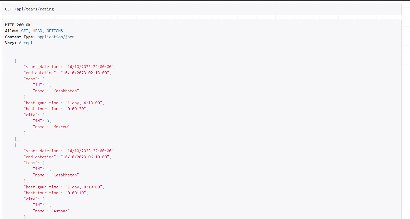 Рейтинг команд по городам: