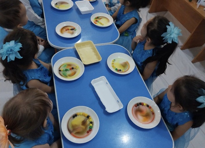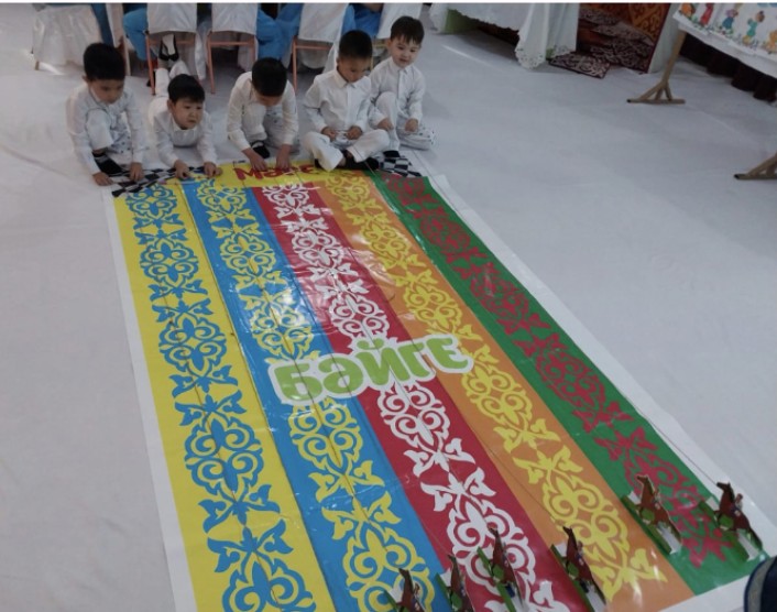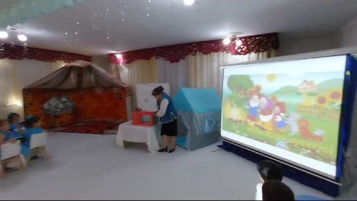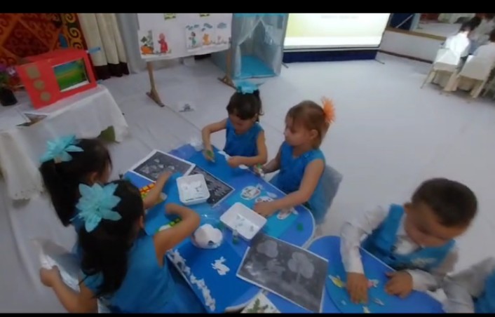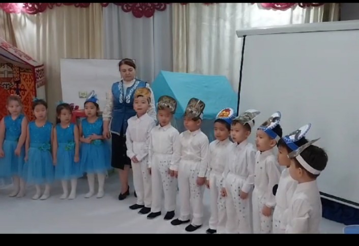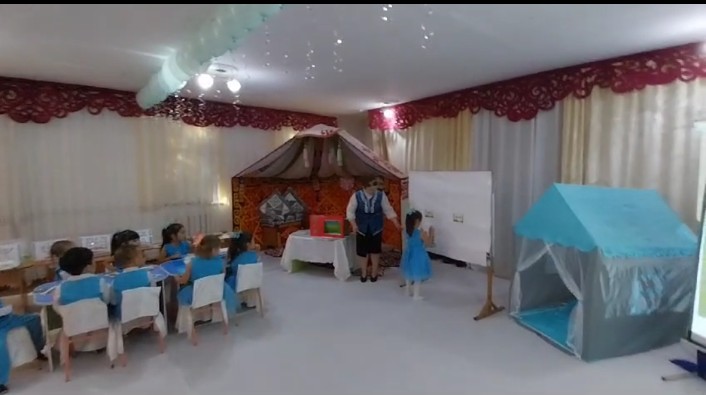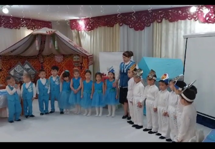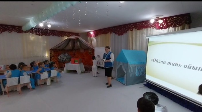 Балалар біздің бүгінгі ойын іс-әрекетіміз өтте қызықты болмақ, үйткені біз жарты жыл бойы өткен ертегілерімізді еске түсіре отырып әңгімелейміз және сахналайтын боламыз және түрлі қызықты ойындар ойнайтын боламыз. Балалар біз ойын іс-әрекетіміз басталмас бұрын біз екі топқа бөніп алайық, және топ басшыларымыз өз топтарын таныстырсын.