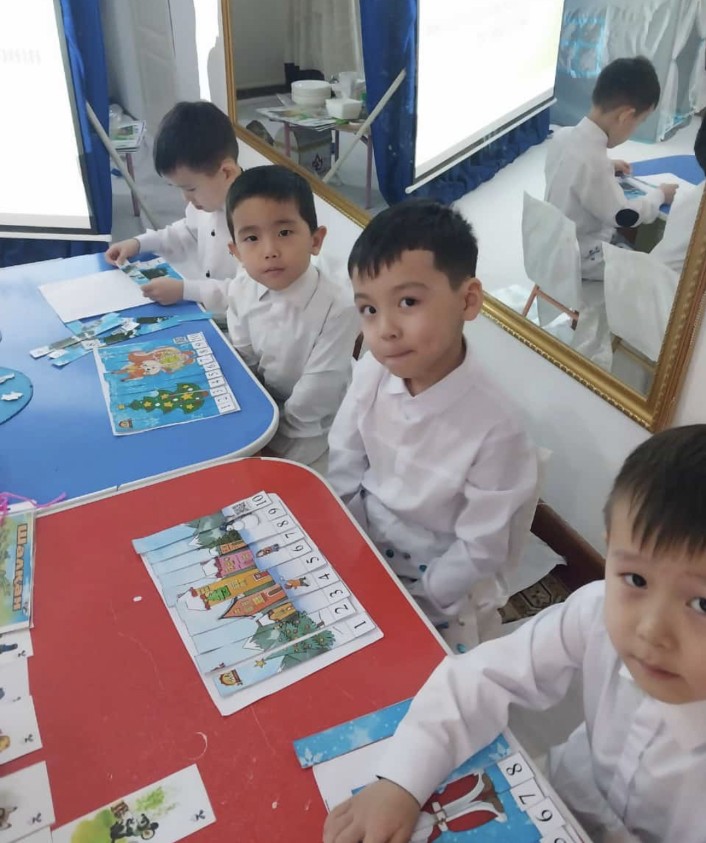Ойын шарты:«Арыстандар» тобы сендерге тапсырма біз математика негіздері оқу іс-әрекетінде 10 ға дейінгі сандармен танысқан болатынбыз ендігі біздің ойнымыз осы 1ден 10ға дейінгі сандарды рет-ретімен орналастырсақ қыс мезгілінің суреттерін құрайтын боламыз