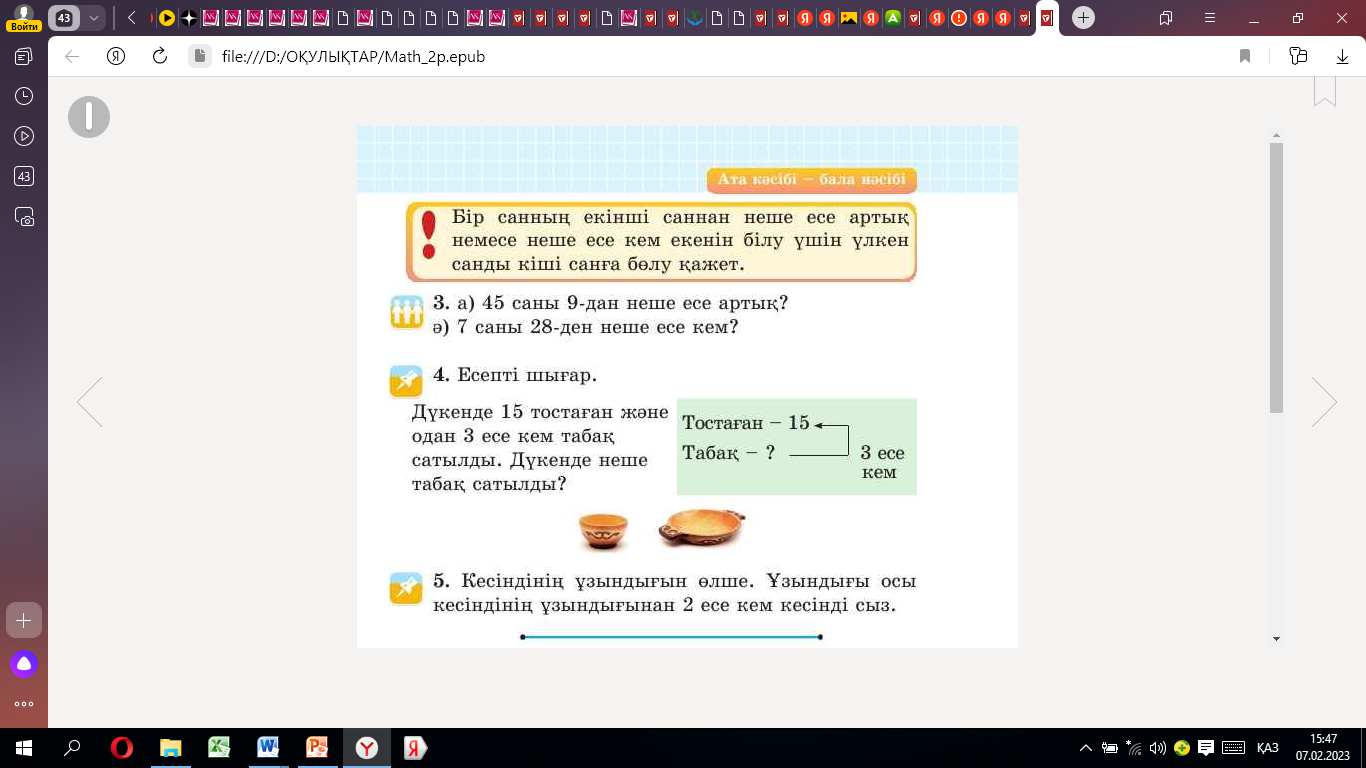 Т Табақ - ? 3 есе кем Ш: 15 : 3 = 5 |
