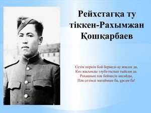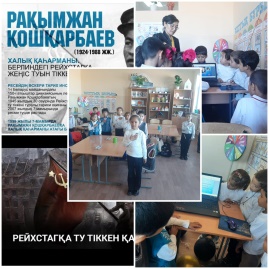 14.10.24ж күні «Рақымжан Қошқарбаевтың 100 жылдығына орай» Р.Қошқарбаев «Рейхстагқа тігілген ту» тақырыбында сынып сағаты өткізілді.