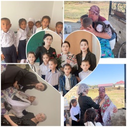 «1 қазан Қарттар күніне» орай сынып сағаты мен ауылдағы қарт кісілерді мерекесімен құттықтап, қазіргі таңда бірнеше немере мен шөбере тәрбиелеп, отбасының ұйытқысы болып отырған қариялардың ақ батасын алып, өсиеттерін тыңдап, рухани азық, алып келді.