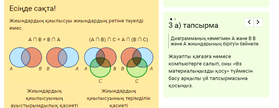 Есіңе сақта Жиындардың қиылысуы жиындардың ретіне тәуелді емес. Жаңа тақырып 3-тапсырма Есіңе сақта