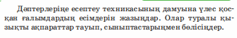 6.1.1.1 компьютерлік технологияның даму тарихы мен келешегі туралы әңгімелеу; |