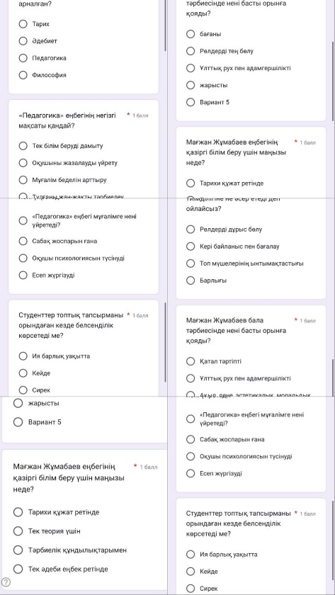 Мағжан Жұмабаевтың «Педагогика» еңбегінің негізгі идеялары бойынша қатысушылардың білім деңгейін анықтау