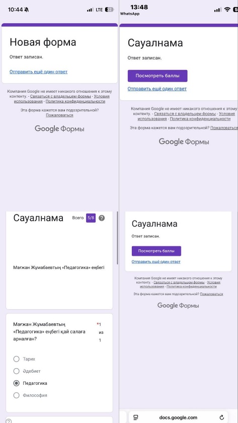 Сауалнама Google Формасында жасалды https://docs.google.com/forms/d/e/1FAIpQLSfnVyt4P0CmEGVpdAPhjkxDhSL__PJVa5m7qKGUc9M_Z5jpWw/viewform?usp=dialog