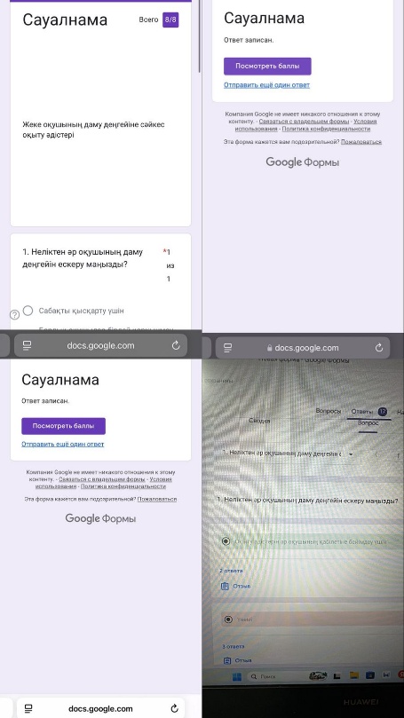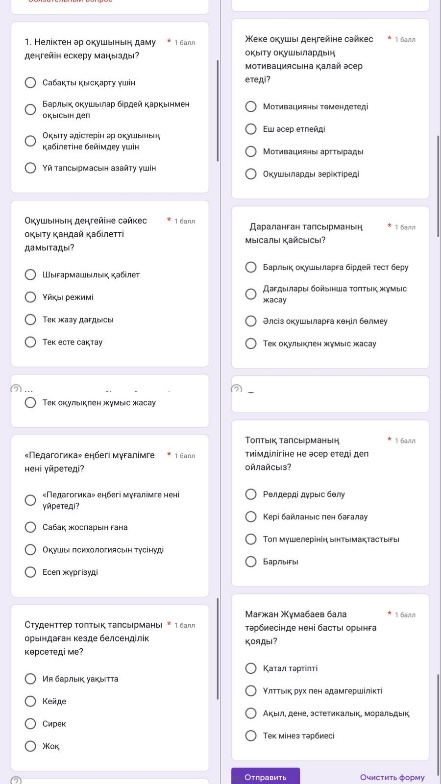 Сауалнама Google Формасында жасалды https://docs.google.com/forms/d/e/1FAIpQLSfnVyt4P0CmEGVpdAPhjkxDhSL__PJVa5m7qKGUc9M_Z5jpWw/viewform?usp=dialog
