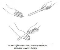 Эстафеталық жүгіру барысында таяқшаны беру тәсілі.