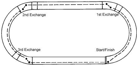 4. Әдістемелік нұсқау. 2-ші және 4-ші бөлікті жүгіруші жолдың сыртқы жағымен, ал 3-ші бөлікті жолдың ішкі жағымен жүгіру дұрыс болып есептеледі.