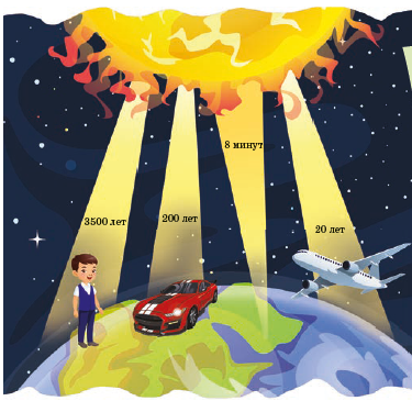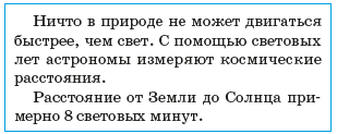Учёные придумали, как измерить расстояние в космосе. Если огромный фонарь направить в небо, луч света помчится в космос. На какой-нибудь далёкой звезде свет фонаря смогут увидеть только через год, а может, через много лет. А до некоторых звёзд лететь миллионы лет. (К) Запомни!!!