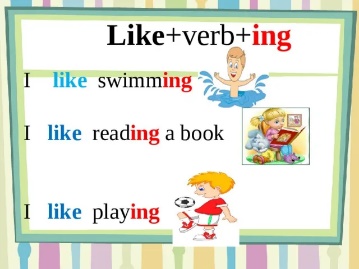 Teacher present grammar Watch a video like + verb + ing. Paint-painting Swim-swimming Books closed. Say as you write on the board: Do you like cooking? Yes, I do./No, I don’t.