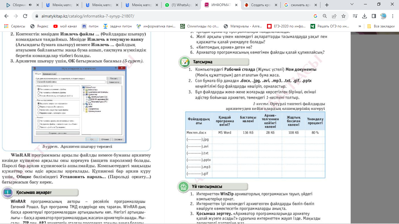 бірдей ақпарат сақталған әртүрлі пішімдегі файлдардың көлемі және мұрағатттау |