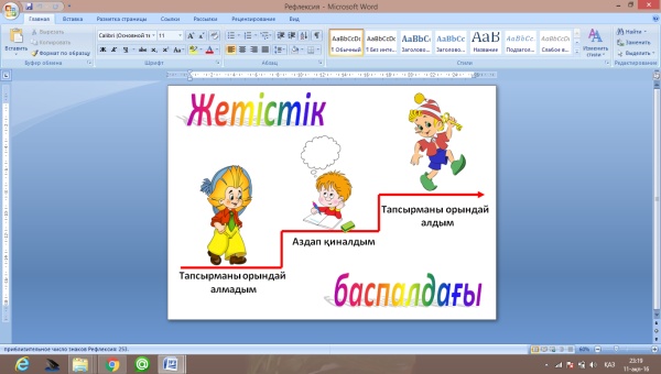 Бүгінгі сабақ бойынша оқушылар сәйкестендіру тапсырмасын орындайды. 1.Оқушыларға өзін-өзі бағалауды ұйымдастырады. 2.Кері байланыс: