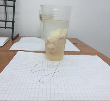 Алғашқы минуттардан бастап біз тәжірибелерімізден қандай өзгерістер орын алатынын бақыладық. Газдалған суға батырылған тауық еті бірден су бетіне қалқып шығып, іри бастаған . Екінші күні ет бөлшегі аздап кішірейе бастаған. Кәдімгі қарапайым суға батырған тауық еті сол қалпында стакан түбінде өзгеріссіз қалды. Ешқандай көлемі де, түсі де өзгеріске ұшыраған жоқ, ал керісінше газдалған суға батырылған тауық еті былжырап, ісініп, түсі қоңыр түске боялды.