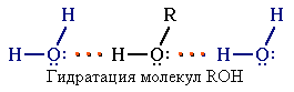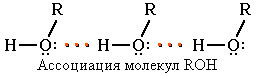 Следствием полярности связи О–Н и наличия неподеленных пар электронов на атоме кислорода является способность гидроксисоединений к образованию водородных связей
