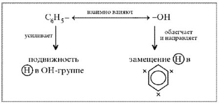 Фенильная группа C6H5 – и гидроксил –ОН взаимно влияют друг на друга.