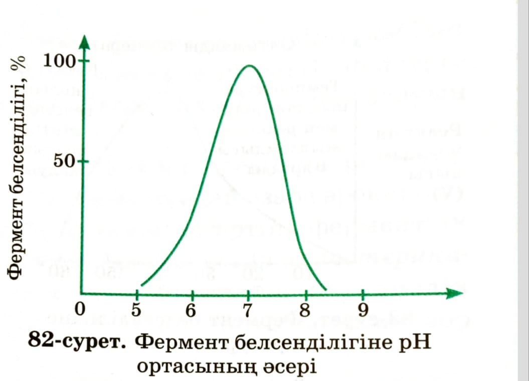 Тапсырма: «Ферменттер белсенділігіне рН-тың әсері» тақырыпшасына назар аударып, оқып шығыңдар және ортаның ферменттер белсенділігіне қалай әсер ететіндігіне сипаттама беріңдер.