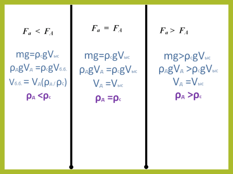 Денелердің жүзу шарттары. Денелердің жүзу шарттарын анықтау,зерттеу. Екі күш әрекет етеді:жоғары бағытталған Архимед күші және төмен бағытталған ауырлық күші