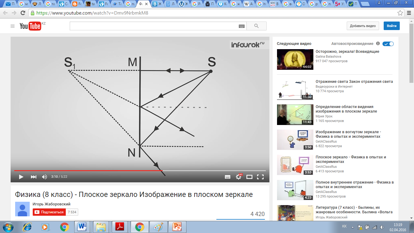 екіге бөлінеді. Жазық айнадан кескін алу. S жарық сәулесінің айнадағы кескінін алуды қарастырайық. Ол үшін бізге MN жазық айнасы беріледі. Жазық айнада кескін алу үшін: