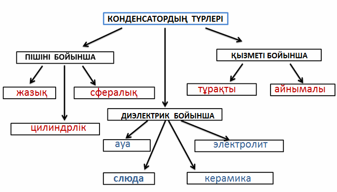 Түрлері Конденсаторлар жазық, сфералық және цилиндрлiк деп ажыратылады. Жазық конденсатор бiр-бiрiнен аз арақашықтықта орналасқан бiрдей екi параллель пластинадан тұрады Конденсаторларды сыртқы механикалық әсерлерден қорғау үшін оларды арнайы корпустармен қаптайды. Конденсаторлар не үшін қажет?