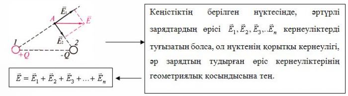10.4.1.2 - суперпозиция принципін электр өрісінің қорытқы кернеулігін анықтау үшін пайдалану; |