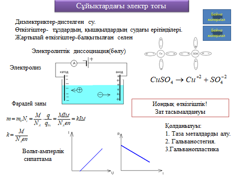 Электролит ерiтiндiлерiндегi және балқыламалардағы электр тогы. Электролиз заңы |