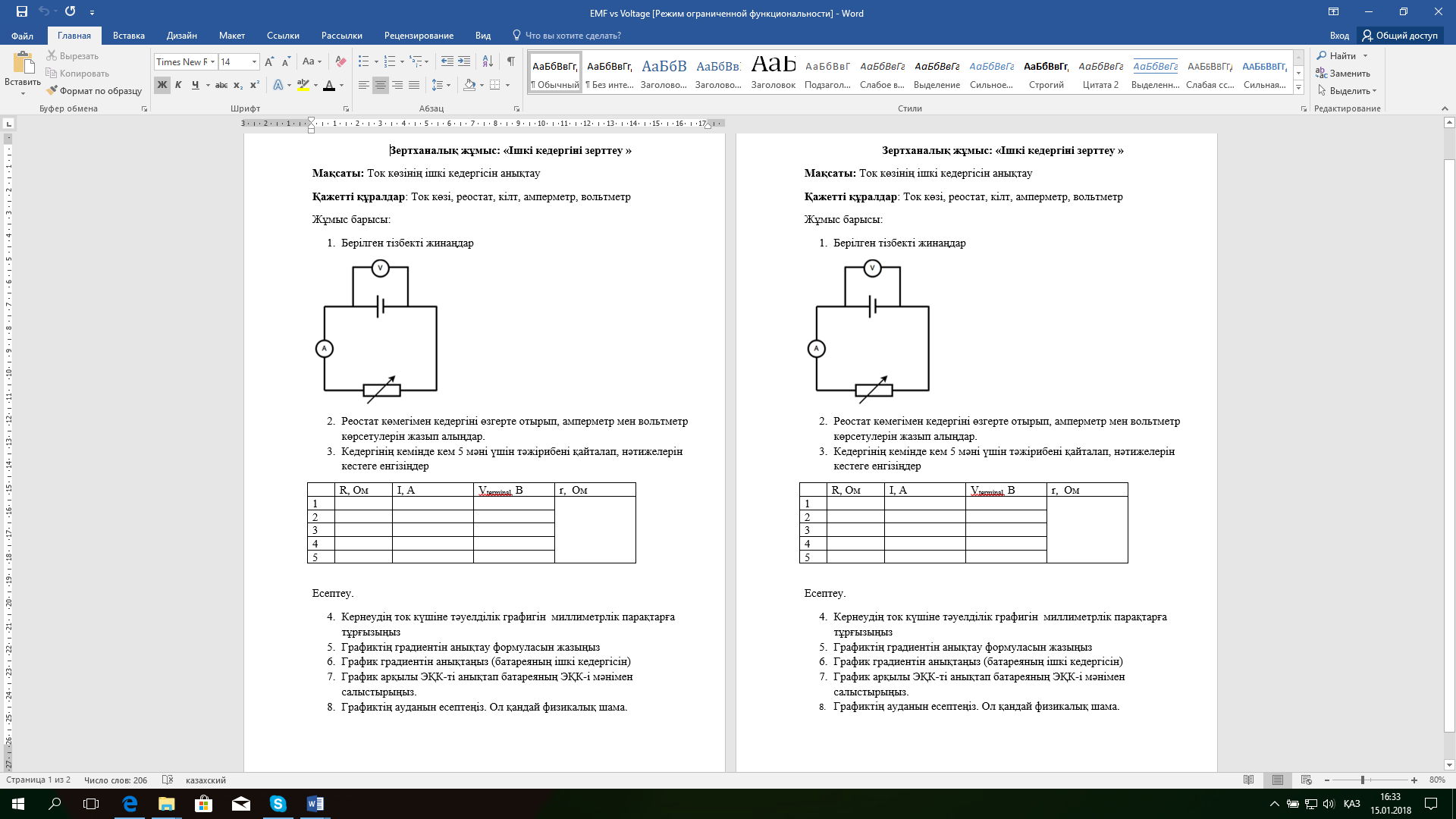 №7 Зертханалық жұмыс «Ток көзінің ЭҚК мен ішкі кедергісін анықтау» |