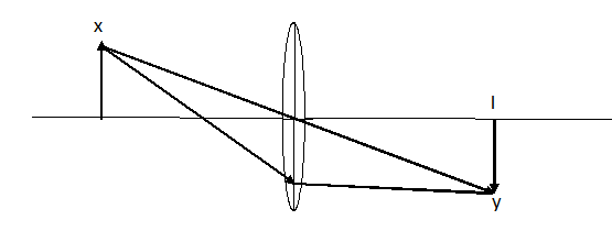 OX нәрсесі жинағыш линзаның алдында орналасқан. Линза IY кескінін пайда етеді.
