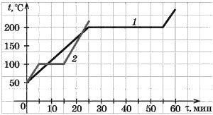 а) Суреттегі 1-ші заттың температурасы 25 минут өткен соң ,қалай өзгерді? [1]