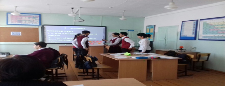Физика сабағында бағдарлама материалын сапалы меңгерту үшін оқыту мен жазу арқылы сыни тұрғыдан ойлауды дамыту технологиясы арқылы және басқа да белсенді педагогикалық технологиялардың әдістерін кірістіре отырып, оқушыларды бір – бірімен пікірлесе білуге, ойларын нақты, ашық жеткізе білуге , тұжырымдарын жасауға үйрету.