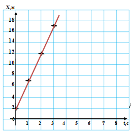 Суретте қозғалыстағы дене координатасының уақытқа тәуелділік графигі кескінделген. Дененің бастапқы координатасы және қозғалыс теңдеуі
