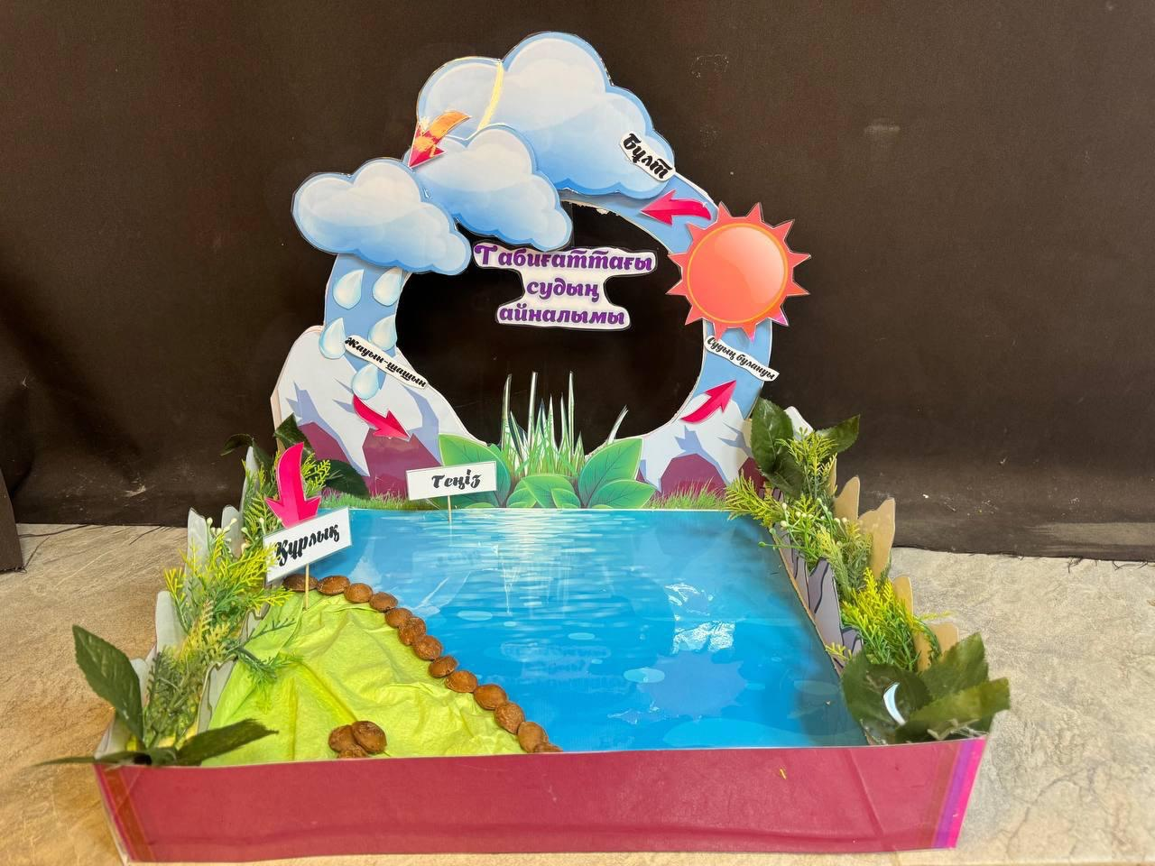 2. Айналымдардың бірінің географиялық моделін жасаңдар және сыныпқа таныстырыңдар. (су айналымы моделін құрастырады.)