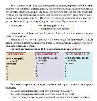 Параметрлі цикл операторын қолданады. |