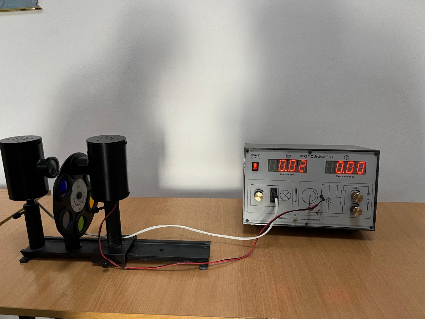 - Фотоэлемент арқылы өтетін ток өлшенеді және оның жарық жиілігі мен қарқындылығына тәуелділігі зерттеледі.