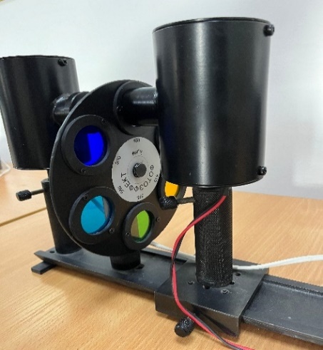 Эксперименттік жұмысты орындау үшін біз алдымен фотоэлементтің вольт-амперлік сипаттамасын алу үшін 1-суретте қажетті құрылғыларды дайындадық. Светофильтр көмегімен жарық көзінен максималды монохроматын алуға тырыстық.