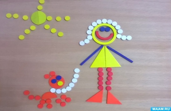 Мақсаты: түрлі жазық геометриялық фигураларды Оқу, оларды түсі бойынша сұрыптау, көлемі бойынша реттеу, қолдың ұсақ моторикасын жаттықтыру, көру-моторлы үйлесімін, шығармашылық және сөйлеу қабілеттерін, ойын қызметін дамыту, қолды жазуға дайындау.