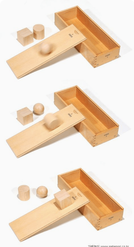 Қорапты сілкіп, бала: "ішіндегі не?". Қақпақты ашып, бөліктерді көрсетіңіз. Балаға жанасуды, сезінуді, қорлауды, ұстап тұруды және саланы зерттеуді, содан кейін цилиндр мен куб кезекпен сұраңыз. Ол оларды бұрып, мұқият зерделеп, салыстырсын.