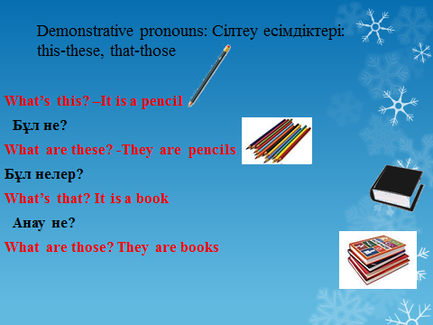 Жаңа лексикалық сөздермен таныстыру, «Бұл не?» сұрағының сөйлемде қолданылуына жаттығу жұмыстарын жүргізу.