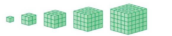 Қыры 2см болатын шаршылардан құрастырылған геометриялық фигуралардың тізбегі төменгі суретте көрсетілген. 6-шы орында орналасқан текше қанша кішкене текшелерден тұрады?
