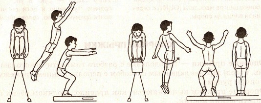 2 . Прыжок с места через препятствие с подтягиванием колен к груди (5-6 раз).