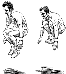 3 .Прыжок с места на возвышение (например, гимнастический мат) с приземлением в положение «сидя» (5-6 раз).