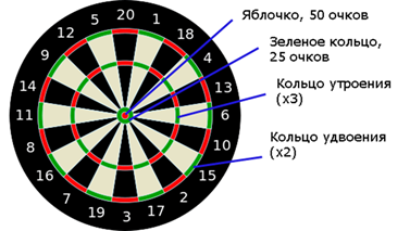 Учитель предлагает учащимсязадания по метанию дротиков дартс. Задание № 1
