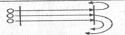 Ученик выполняет ускорение по прямой, передает эстафетную палочку ученику во встречной колонне и остается за замыкающим в противоположном колонне. Выполняют, пока не окажется каждый опять на своем месте.