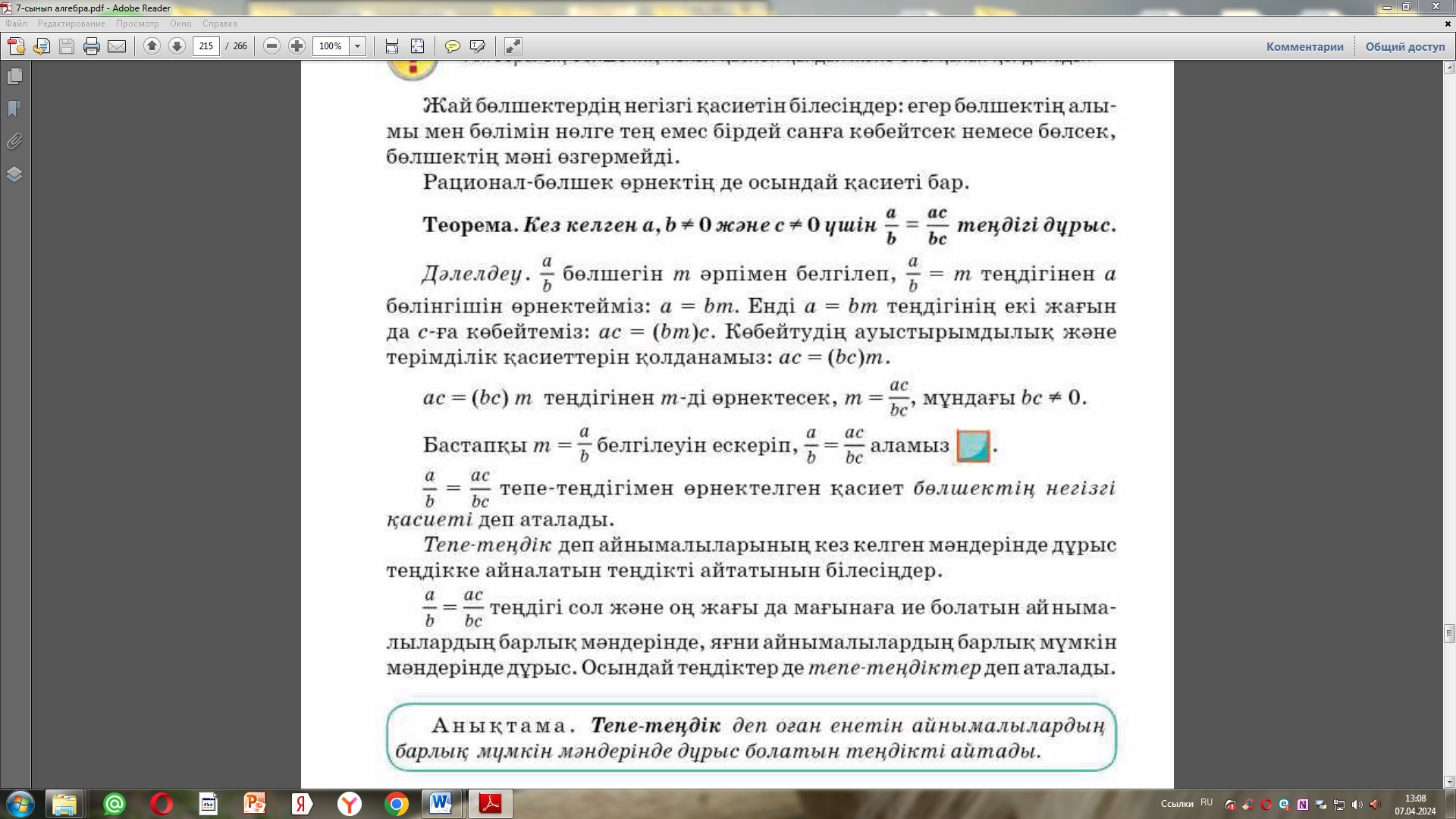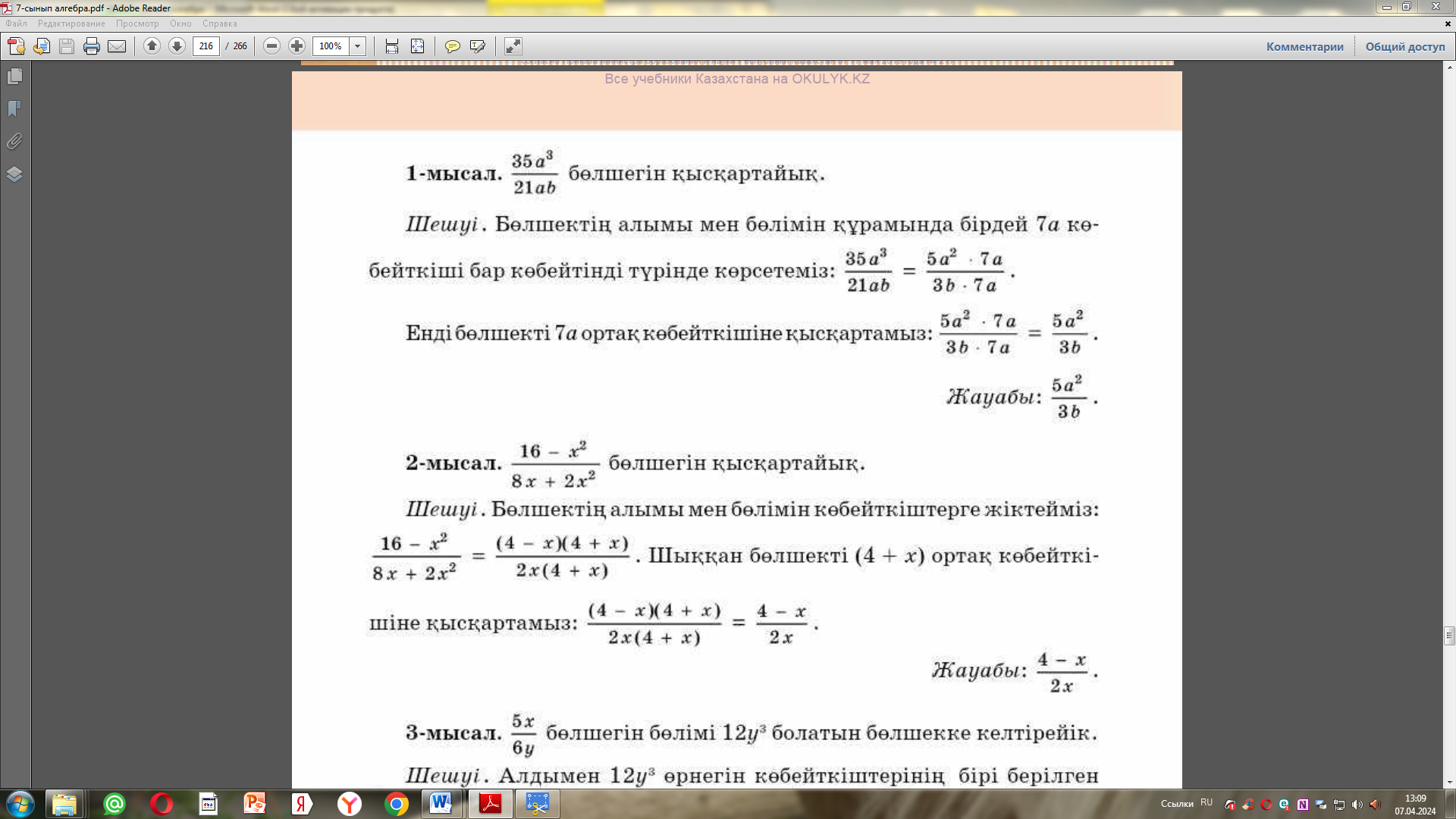 7.2.1.18 алгебралық бөлшектің негізгі қасиетін қолдану: