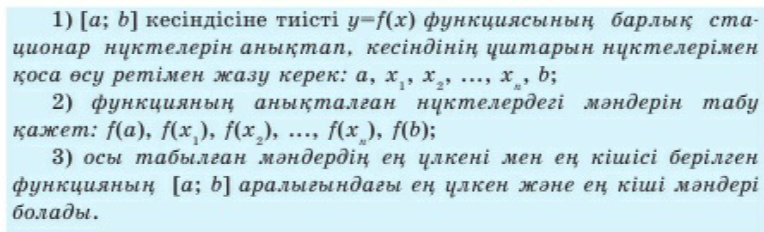 Функцияның кесіндідегі ең үлкен және ең кіші мәндері |