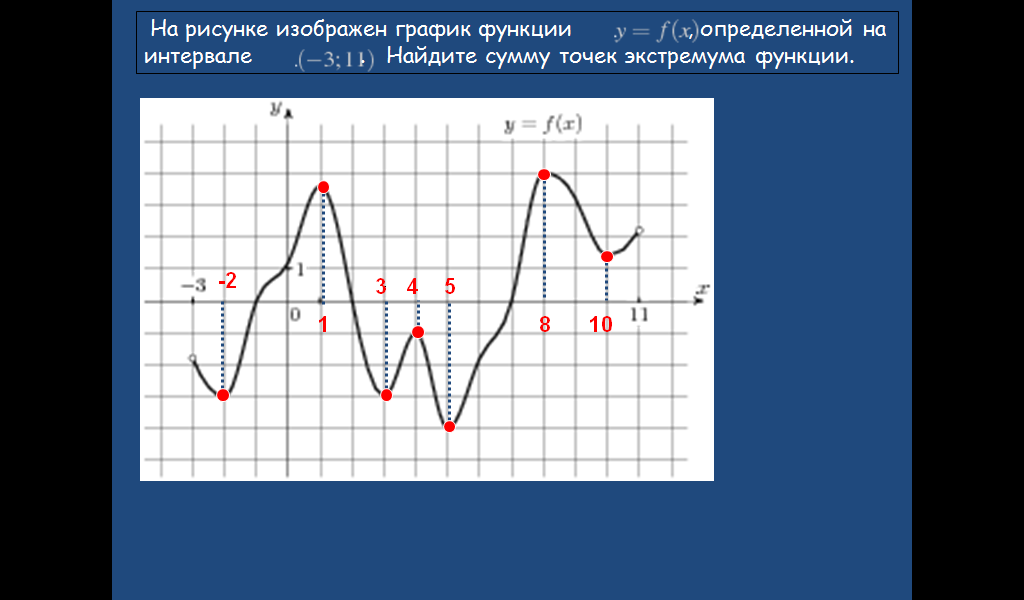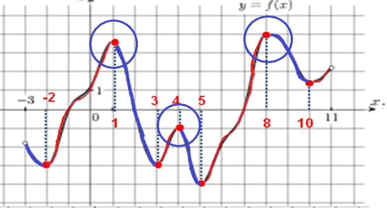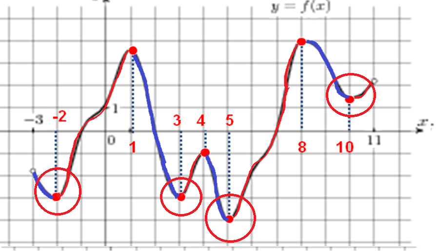 Суретте f(x) функцисясының графигі берілген. Максимум және минимум нүктелерін тап