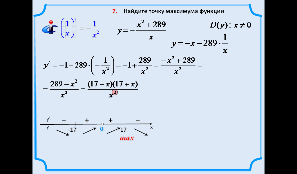 экстремум нүктелерінің бар болуының жеткілікті шартын қолданып, максимум және минимум нүктелерін табады. |